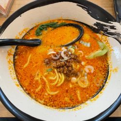 担々麺とミニ餃子とライスのセットです。
