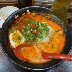 スープは豆板醬が効いた辛めの豚骨 麺はちぢれ麺