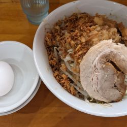 今日の気分は汁なしだったので200gをチョイス、食券を渡す際にコールを聞かれるので、ニンニクなしでオーダーしました。