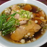 ラーメン(450円)を。スープは、油分なく、出汁感も希薄。醤油感で食わせる印象。麺は、ちりっとした中細。具は、ネギ・青菜・チャーシュー。卓上にメニューは見当たらず、店内の張り紙のみなのかな。少々、分かりづらい。デフォルトのラーメンが450円は恐れ入ります。