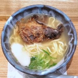 清潔でウッディなカウンターに腰かけ、チョイスは豚足が乗ったてびちそば1000円。ここに三河産あおさ230円をトッピングして、キョロキョロしながら着丼を待ちます。... 続きを見る