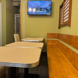 緑色のド派手な外観と同じで店内もグリーン基調で落ちついた、今日現在4人掛けテーブル席が4卓あり暖かいお茶は出して頂きました(奥にお手洗いあり)