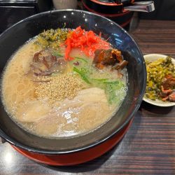 こちら、いまや長浜系も800円でも安いと思えるし、なにより高菜が食べ放題。東京でもトッピングが有料になっていたり、キクラゲ入ってない高菜が置いてないとか普通にあるからなあ。