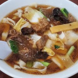 麺は、製麺された刀削麺。味香苑はどちらもそのようなので、織り込み済み。