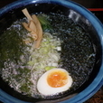 | 備考 | 魚介の効いたスープにめがぶと青海苔がのっている。麺は自家製手もみクロレラ麺。カニ、帆立、海老をふんだんに使った塩ダレは当店自慢の味。20種類以上の食代をブレンドした、あっさりとしていますが複雑な味わいのスープ |