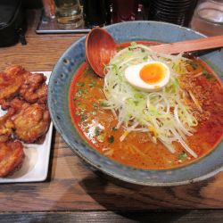 短めの中太麺で、スープの辛さは個人的に丁度良く、濃いめの味噌スープ🎊挽肉、ニラ、白髪ネギ、卵がのっており、卓上のニンニクを足してパンチを増して完食✨万人受けの美味しい味噌ラーメンでした🌈