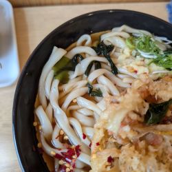 私はかき揚げうどんを頼みましたが、天ぷらは作り置きしているものの、カラっとしててサクサクでした。