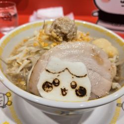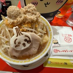 | メニュー | メニューの写真を見る ラーメン豚ミニ(ちいかわ)麺130g 1540円 |