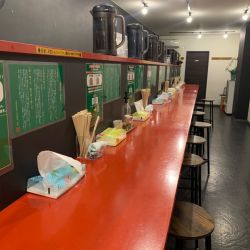 入ったところの券売機で食券を買って、食券と一緒に野菜とニンニクの量が聞かれます。初めてなのでデフォの普通をお願いしました。