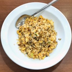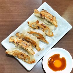 初めて入った大陸系町中華「逸品楼」さんで、ラーメンとチャーハンのお供に手作り焼き餃子418円を注文します。まずチャーハンが来て、次がラーメン。そいつらを半分ほどやっつけて、餃子忘れられたんじゃないかと心配になって来た頃に着皿。