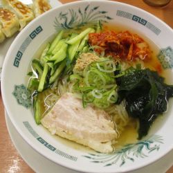 タッチパネルをポチポチしていたら、餃子付きで20円お得な冷麺のセットを発見、早速ポチポチ。
