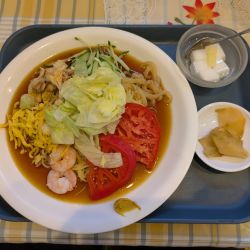 お冷やが置かれたタイミングで「冷やし中華」を注文します。