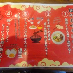 | メニュー | メニューの写真を見る 鶏坦々まぜSOBA(一辛/二辛/三辛) 1,100円 |