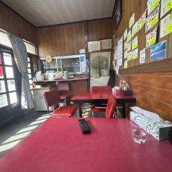 店内は狭いですが、昔ながらの赤いテーブルで統一されてました。