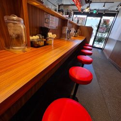 店内はほとんど豚骨スメルを感じない白基調で縦長な、今日現在下に深い厨房向きカウンター13席と4人掛けテーブル席が6卓、2人掛けテーブル席が2卓ありお水は卓上のピッチャー... 続きを見る