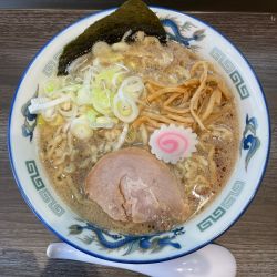 具は、海苔・ネギ・メンマ・チャーシュー。ネギが美味しい。卓上に味変アイテムが豊富に揃うのも嬉しい。