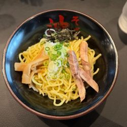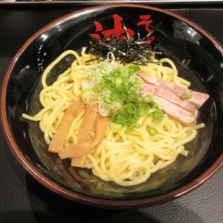 店内は東京油組統一の白基調で縦長な、下に棚のある厨房向きカウンター8席のみでお水は出して頂きました(壁側にハ... 続きを見る