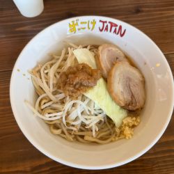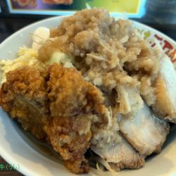 以前は坂戸つけめんを提供していましたが、今は二郎系のメニューに変わっています。特製トッピングにすると唐揚げやウズラの玉子が付いてボリュームUP、良い見た目。