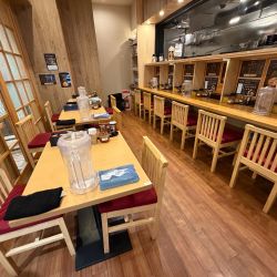 府中駅前ル・シーニュの3階にある。右手に券売機。カウンター9席とテーブル2×2。男女で切り盛り。
