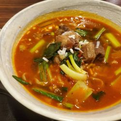 【注文】牛バラ麺(1000円)。このメニューには唐辛子マークがついている。どの程度の辛さか期待しつつ注文。