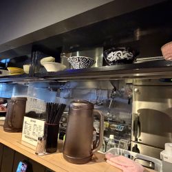 店内は黒基調で落ち着いた縦長の、今日現在厨房向きカウンター7席のみでお水は出して頂きました(壁側にハンガー掛け、壁下に荷物カゴ、奥にお... 続きを見る
