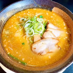 幸楽苑のレギュラー味噌との違いを確認すべく、期間限定の表題を注文👍レギュラーよりマイルドな味噌に背脂の甘みと焼豚の旨みが滲み出るスープ🎉具材は焼豚、玉ねぎ、ニラ、メンマ🏌🏻♂️スライスされた玉ねぎが清涼感を増して良い脇役でした⭕️個人的には具沢山の味噌野菜たんめんに軍杯があがりしました🌈