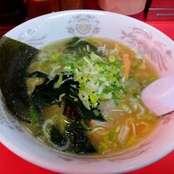麵はやや縮れで出汁を良く吸い上げ、ワカメ、メンマ、薬味ネギとの相性も抜群です。