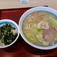 暫くして配膳された丼には8の文字が入った蒲鉾が印象的で早速スープから頂くと出汁感は希薄ながら塩ダレに炒め野菜の油が移り熱々で旨味充分の一杯が楽しめ... 続きを見る