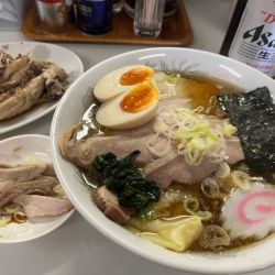 メニューは豊富で、お酒も楽しめる感じですね、手打中華を注文、直ぐに着丼、過去1の速さです、スープはあっさりめですが油っこいんでコッテリしてる感じです、麺は中太縮れなんですけど硬めで独特な食感です、チャーシューは脂身がなく硬めなんですけど、昔の白河ラーメンらしさが良い感じですね、あっという間に完食、ご馳走様でした... 続きを見る