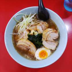 券売機は無く後払いの店です、注文して数分で着弾します、スープは塩気が少なくコクも平均的な味ですね、麺は中盛りで300グラムあるかどうかでごく普通のラーショの中華麺です、トッピングはワカメとネギとメンマとチャーシューと中庸な内容ですがチャーシューは... 続きを見る