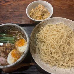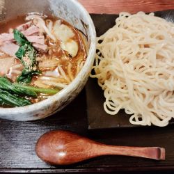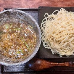醤油、ゴマ醤油、四川、と3種類のつけ麺がありましたが、デフォルト(おそらく)の醤油で、そして「おすすめ!」と書いてあったので野菜つけ麺をいただきました。