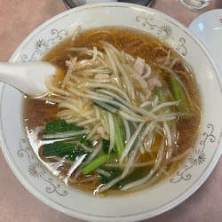 ねぎそば(825円)を。スープは、油分のない醤油清湯。麺は、コリっとしたストレート細麺。具は、ネギ・細切りチャーシュー。こちらのレバー皿・炒飯が好きで2回目の訪問。ちなみに食べログ中国料理EAST百名店2021選出店です。