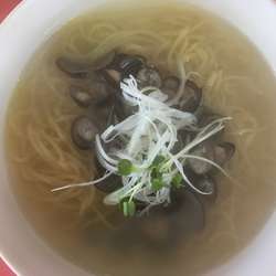 スープは脂浮きがなく醤油が控えめであっさりしている。