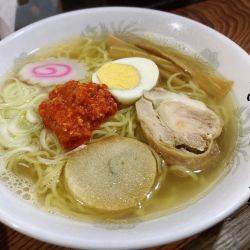 到着時、満席だったのがいつの間にか1人に…色々とお話ししてる流れでもう1杯、「津軽ら〜麺(塩)¥220」ぉ。