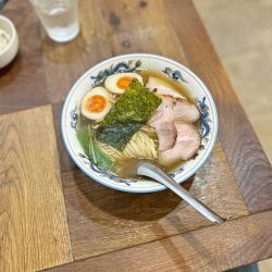 超久々。スープはあっさりだけど旨みしっかりで美味。魚介・動物系・乾物など様々な素材を使ってそうな複雑な味わいで、他で全く頂いたことがないタイプ。これは凄い。麺は直細麺。