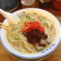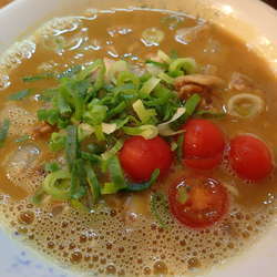 東北地方を中心にトンコツラーメンを提供するチェーン店だが、盛岡店には明太子やトマト、花カツオ、とろろ昆布等が載ったメニューや、カレーラーメンといった普通のトンコツラーメン店にはないユニークなメニューが数多くある。今回はノーマルなものに背脂を散らした標記を注文した。8... 続きを見る
