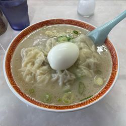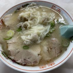 久しぶりの訪問。以前はまだお店の改装前で駐車場も無秩序に止めてありましたが、現在はきれいに舗装され、区画分けさて言います。午後3時にも関わらず駐車場は満車。待っていると程なく空いたので無事駐車。結構おなかが空いていたのでワンタンメンとおにぎり(2個)をプッシュ。これで870円って今時安すぎます。