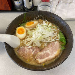 伏古のラーメン屋ゆげや。5〜6人待ちの行列に並ぶ。こってり醤油ラーメンを食べた。麺は、円山製麺の中太縮れ麺で、背脂のかかった豚骨醤油スープに負けない味わいある麺。チャーシューは、ロース系の生ハムのような旨いのが2枚が嬉しい。平日は小ライスか、大盛りが選べるので小ライスを選択する。久々に旨い豚骨醤油を食べた気がする。煮卵を付けたので、100円増しの850円。