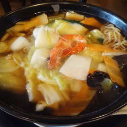 ランチにこちらを訪問。大正14年創業の老舗中華料理店だそうだ。店はビルの1階から3階。1階が厨房で2階、3階にテーブル席が各30席ほど。