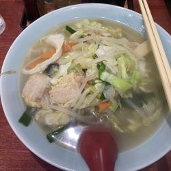 午後の練習が終わり、リサーチしてあった吉聚閣さんに向かいましたが、よもやの全店貸切で入れず。そこからほど近いこちらにきました。17時25分に訪問、オーダーしました。カウンターには醤油、酢、ラー油、コショウが置いてありました。
