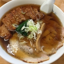 スープは非常に控えめ。故に揚げた豚の香ばしさが堪能できる。