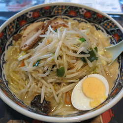 ホルモン焼き麺 950円。居酒屋の昼営業、券売機無し。2回め。12時10分ほぼ満席。団体客も多く騒がしい。ホルモン焼き麺を頼む客も多い。モヤシ、キャベツ、ワカメと炒められたモツ、熱々、美味い。半ゆで玉子。麺は太くない。野菜炒めと同系統の甘めのタレは多め。満腹度は高い。モツ、という割にはパンチ感は無い。何かもうワンポイント欲しい。