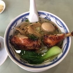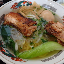 塩ラーメンの上にでっかいピリ辛もも肉!