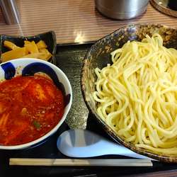 | 備考 | 中目黒に本店を構える三ツ矢堂製麺5店舗目。 自家製麺が売りのつけ麺屋。 麺は菓子用高級国産小麦を使用した自家製の太麺。 公式 http://idc-inc.jp/ 社長ブログ http://idcceo.exblog.jp/ スタッフブログ http://mitsuyado.exblog.jp/ 麺は並(250g)、中盛り(375g)、大盛り(500g)まで無料。 特盛り(750g)+100円、極盛り(1500g)+400円。 麺は茹で上げ後の表示なので注意(少なく感じる)。 麺の提供温度が4種類から選べます。名づけて「締め分け」。 熱もり: あつあつの麺 ぬめり落とし: 常温程度の麺 冷もり: ほんのり冷たい麺 氷締め: 氷水でギンギンに締めた冷たい麺 通常は冷盛りで提供されます。 |