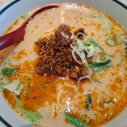クリーム色のスープに、ラー油のような色合いの油が浮いています。辛そうな雰囲... 続きを見る