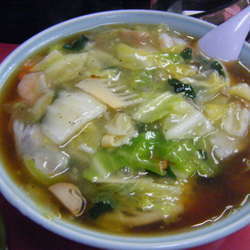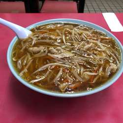 たっぷりのもやしが入った餡掛けスープはにんにくたっぷり♪