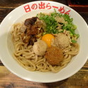 | 備考 | 横浜の日の出らーめん 横浜桜木町本店さんの四日市分店 魚介醤油650円 特濃うま醤油700円 こく塩700円 剛つけ麺750円 ガッツ麺DX(油そば)780円 日の出二郎 750円 *2011年4月1日再開後の新メニュー トッピング多数、ランチタイムはライス無料。 |