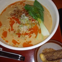 ホァジャオのシビレが効いたスープはゴマの風味香る本場四川の担々麺🇨🇳すり鉢に入ったゴマは楽しくアレンジができていいですね✨栃木磯谷商店の特注中細麺は柔らかめですが、スープとの相性も良いです🍜卓上の辛味噌も投入するとシビレが増し... 続きを見る