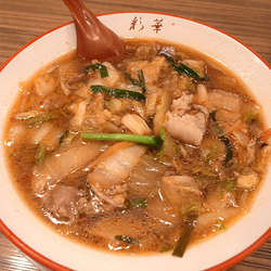 サイカラーメン青ネギ入り小(950円)をいただく。奈良のソウルフードである彩華ラーメンはピリ辛な旨味のあるパンチのある神座という感じで美味かった。