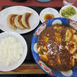 「麻婆メン(800円)+半ライス270円+半餃子270円」@手打らーめん 珍來 つくば松代店の写真2025年8月17日(日) 11時15分頃訪問。
